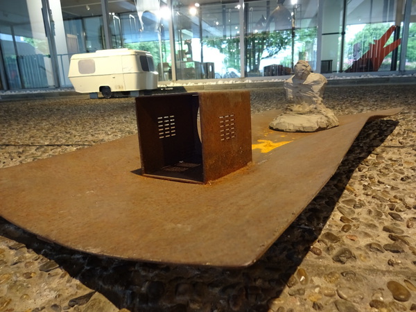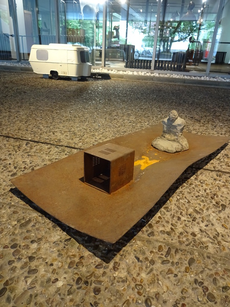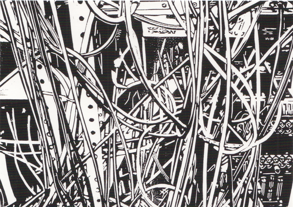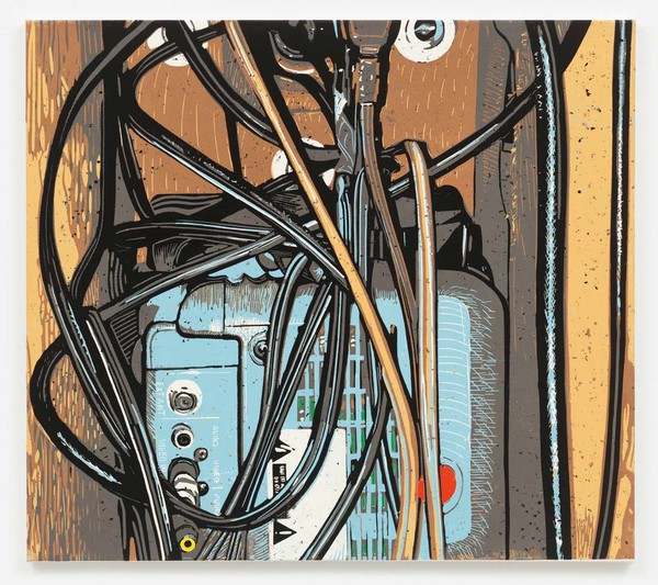 Jochen Saueracker - Columbus and Boat (leg) - linocut on canvas - 80 cm x 90 cm - one of two copies - 2022 - photo Achim Kukulies